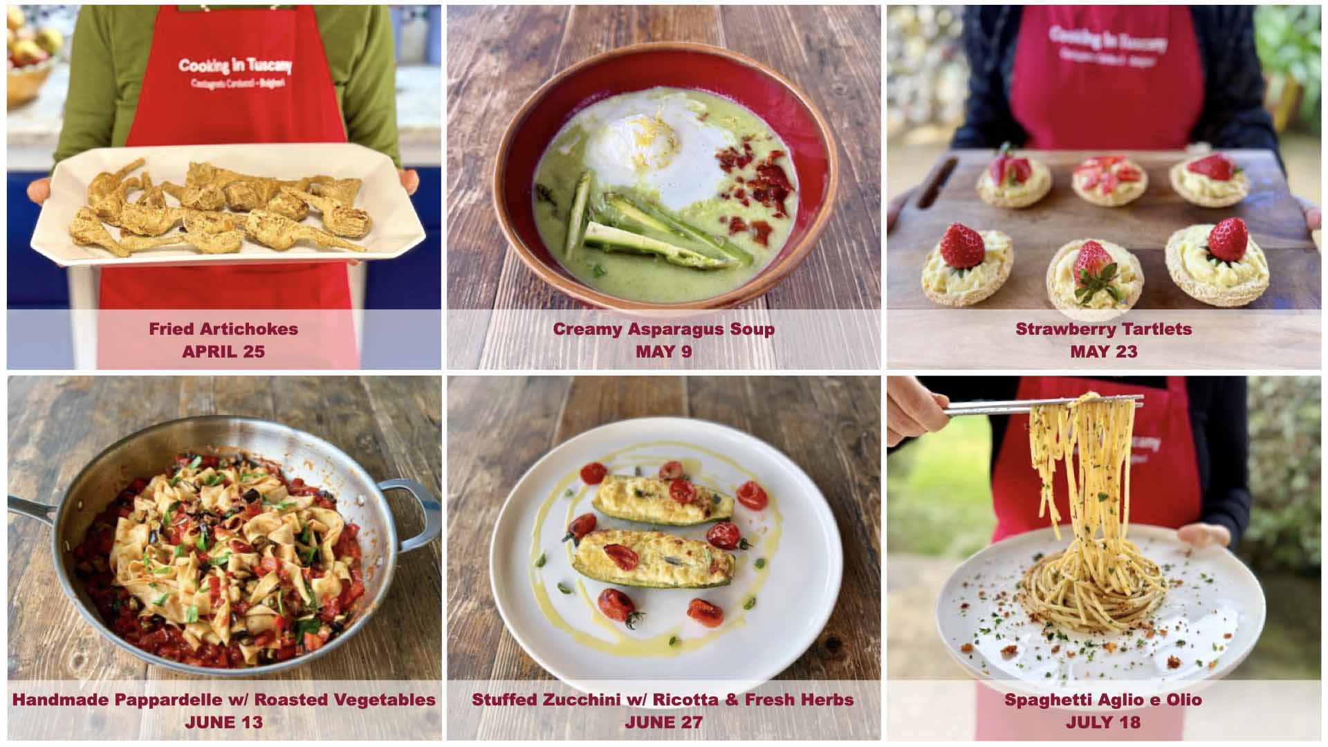 For six Saturdays, we’ll cook live from my kitchen in Bolgheri, making simple seasonal Italian recipes from scratch, the way we really cook at home in Tuscany.